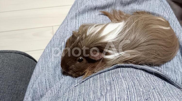 タイトル : 膝の上でくつろぐ長毛種のモルモット![]()