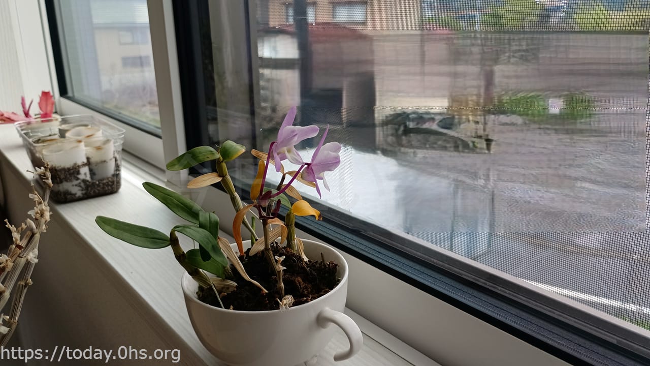 去年高芽取りした洋ランも春には花が咲いた